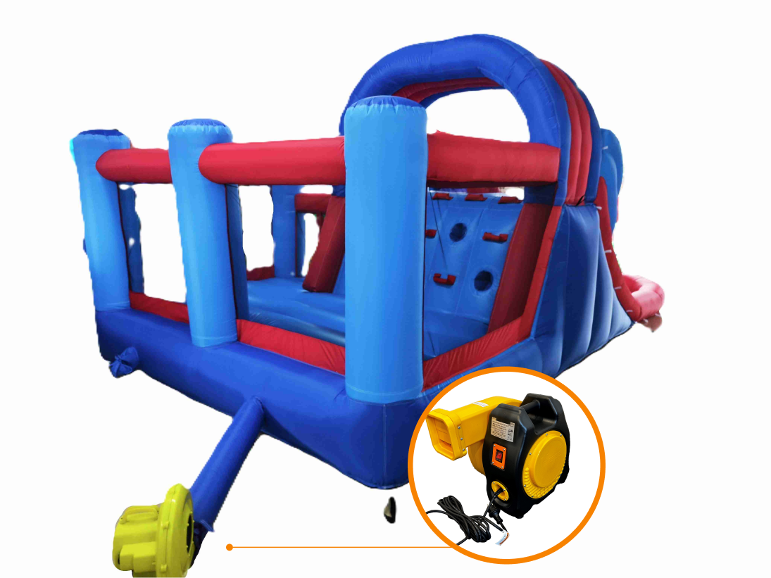 Setting up the Royal Wave Playground is a breeze—just connect the blower to the power, attach a standard garden hose, and watch the fun unfold. Each Royal Wave Playground inflatable comes complete with a powerful blower, storage bag, anchors, and a repair kit, so you're ready to go in minutes. Plus, all our inflatables meet the latest safety standards, ensuring a safe and enjoyable experience for everyone.
