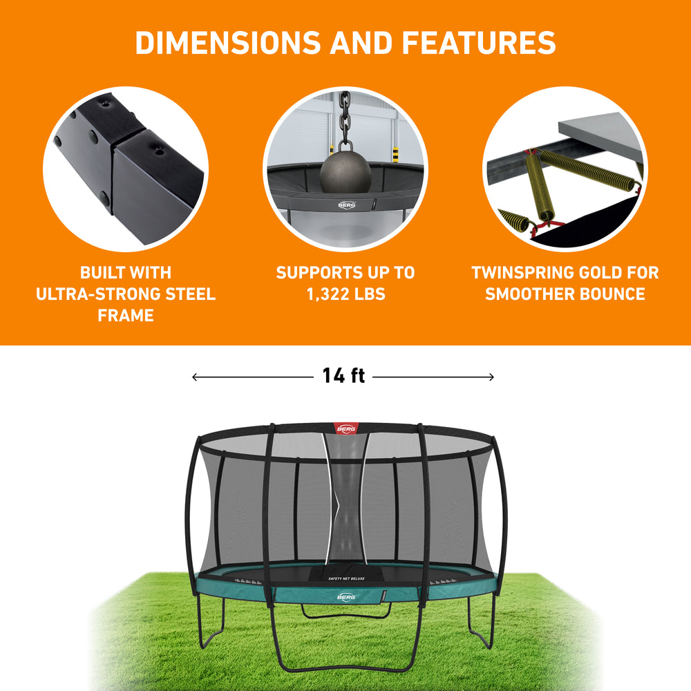 BERG CHAMPION 14' ROUND ABOVE GROUND TRAMPOLINE + SAFETY NET DELUXE