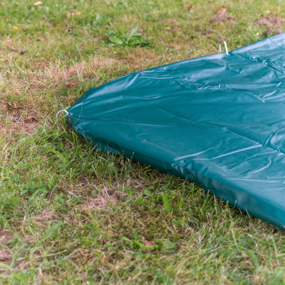 This green cover is available for both the 12', 14' and 15' Avyna Round Pro-Line In-Ground and the 10x14', 10x17' and 12x18' Avyna Pro-Line in-Ground Rectangle trampoline. The cover protects your trampoline against all weather influences such as rain, snow and sunlight, but also against dirt. If you want to extend the lifespan of your trampoline, it is always a plus to use a cover.