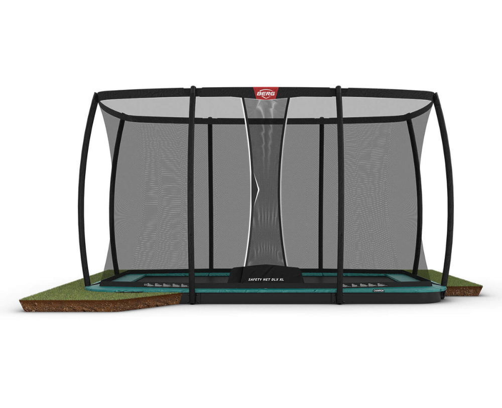 - SAFETY FIRST: BERG knows that safety is a priority, that’s why this trampoline with enclosure is made with the highest quality materials. Long lasting TwinSpring Gold Springs, Airflow Jump Mat, and an included safety net enclosure will not only allow for years of fun, but overall safety while using the Champion trampoline