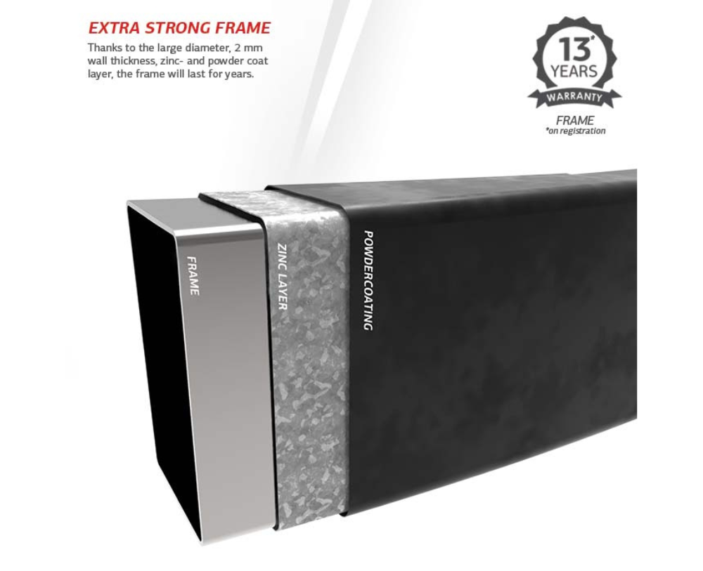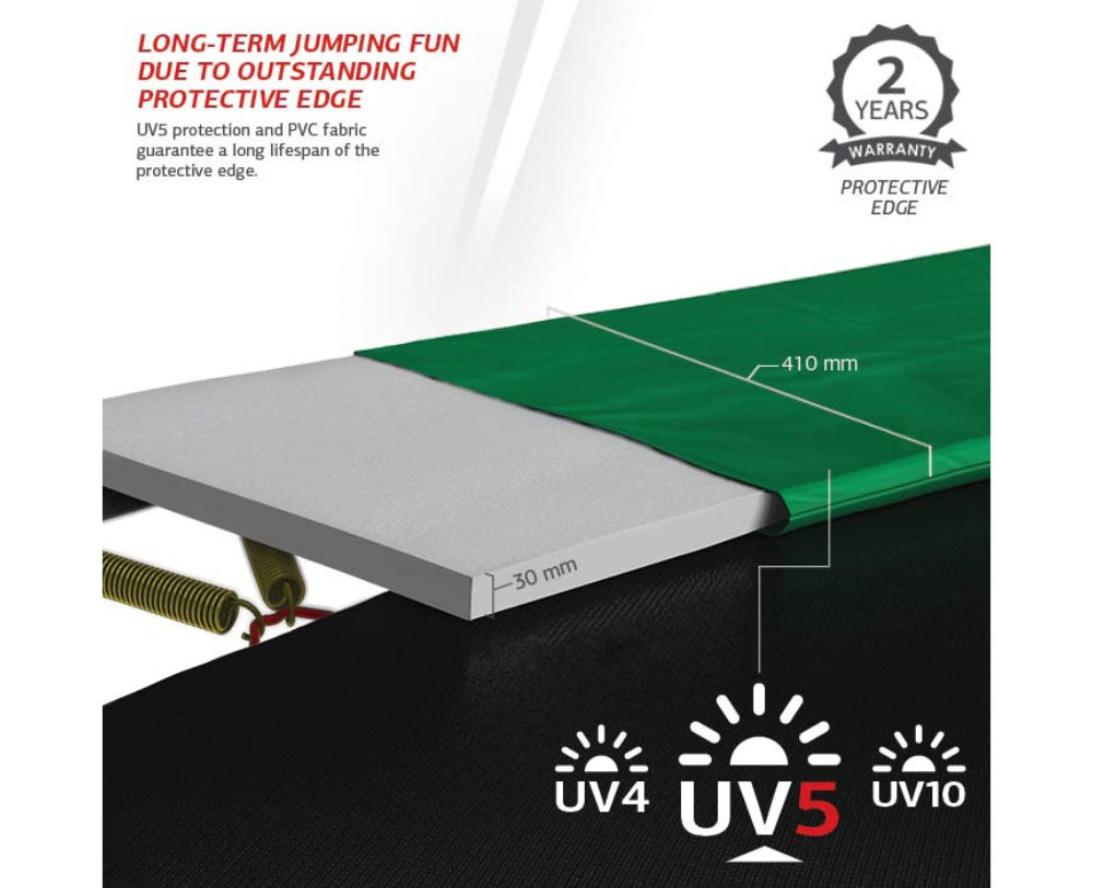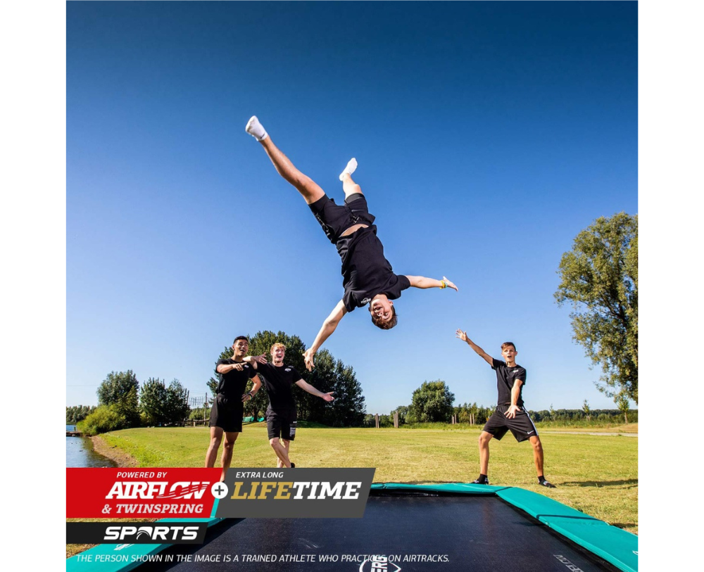 The Ultim Champion is of course equipped with the Airflow jumping mat and Twinspring springs. The Airflow jumping mat allows 50% more air permeation. This allows you to jump higher and makes you less tired. The Twinspring springs are placed diagonally. As a result, the trampoline has more springs, which are also longer. This ensures more jumping pleasure and gives you the perfect jump area.