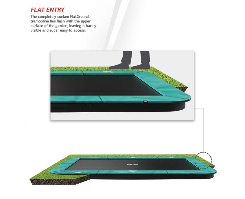It's also equipped with an optional extra high safety net (86 in!). In addition to the Ultim Champion FlatGround, this is the only FlatGround trampoline that can be fitted with a net.