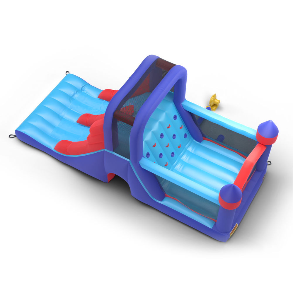 The Royal Tower Slide Bounce House is designed with your child's safety and long-lasting fun in mind. We've redesigned the typical bounce house by upgrading materials where it matters most. While standard models use only 420D nylon throughout, ours feature 420D nylon for side walls and pillars, stronger 840D nylon for the bottom foundation, and durable 0.4mm PVC material in all jumping, climbing, and sliding zones. This targeted reinforcement of high-impact areas means our bounce houses withstand active play much longer than conventional all-nylon designs.