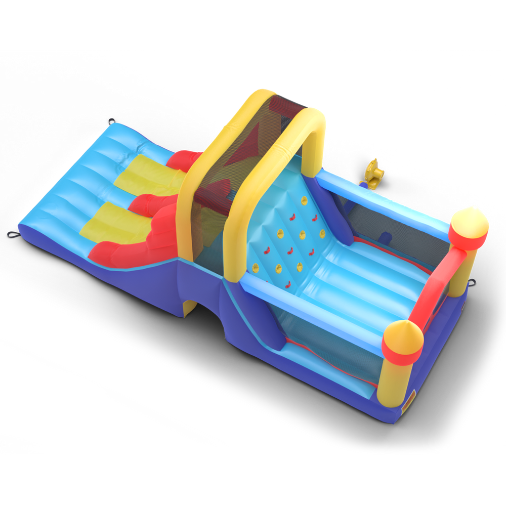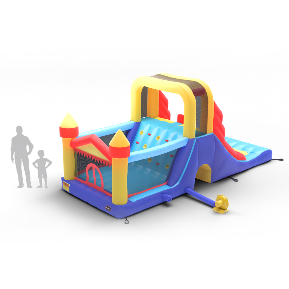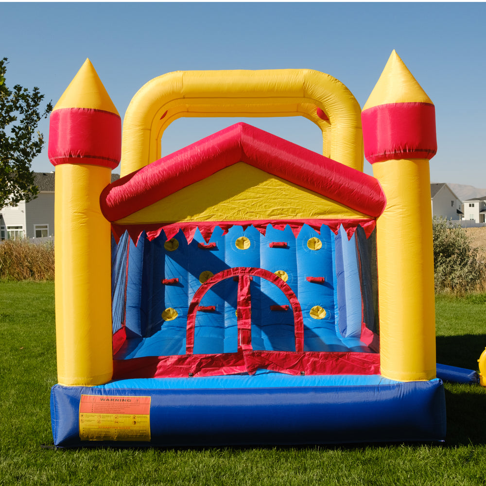 The Royal Tower Slide Bounce House is designed with your child’s safety and long-lasting fun in mind. We've redesigned the typical bounce house by upgrading materials where it matters most. While standard models use only 420D nylon throughout, ours feature 420D nylon for side walls and pillars, stronger 840D nylon for the bottom foundation, and durable 0.4mm PVC material in all jumping, climbing, and sliding zones. This targeted reinforcement of high-impact areas means our bounce houses withstand active play much longer than conventional all-nylon designs.